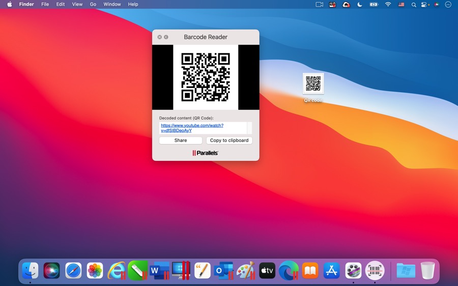 macOS och WindowsAnvänd en inbyggd kamera för att skanna en streckkod eller importera en bild för att identifiera innehåll som är kodat med en streckkod eller QR-kod. Länkar känns igen automatiskt och du kan klicka på dem direkt.