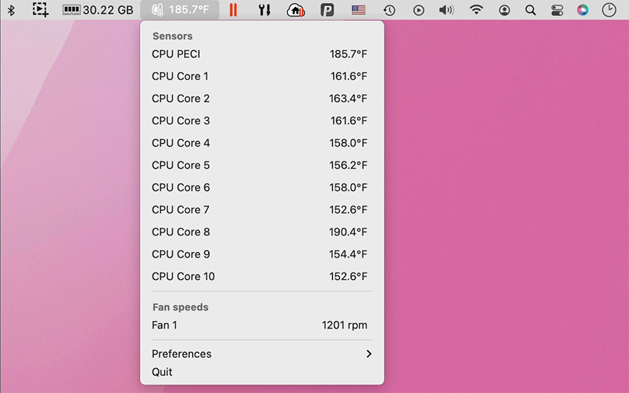 macOSSpåra aktuell CPU-temperatur på din Mac från menyfältet.