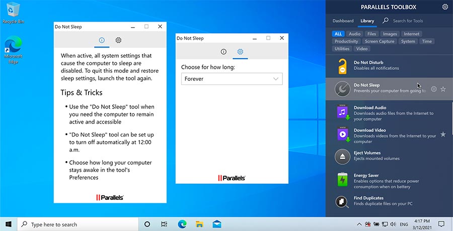 - Och så mycket mer! Se Parallels Toolbox i funktion