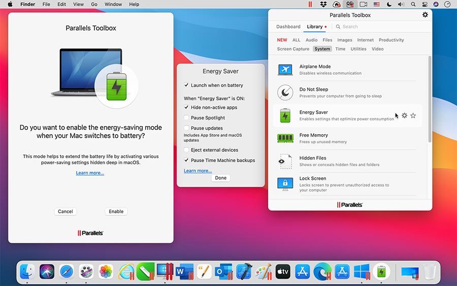 Parallels Toolbox för Mac innehåller de Mac® och Windows® verktyg du alltid har önskat du haft till ditt förfogande – allt i en enda app.