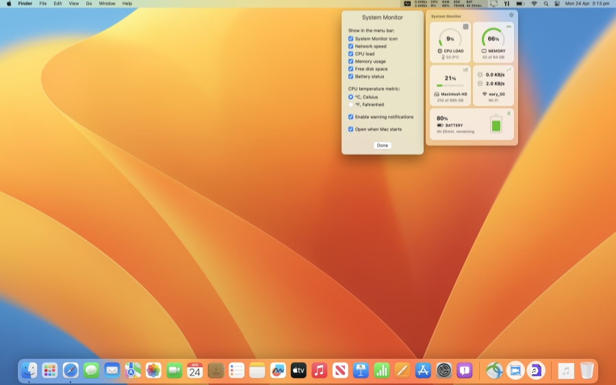 macOSÖvervaka datorprestanda i en enkel, enhetlig vy utan att störa ditt arbetsflöde.