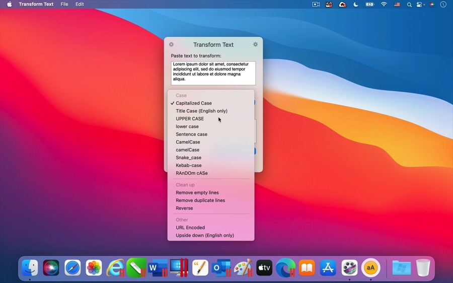 macOS och WindowsAnvänd verktyget för att omvandla text mellan olika slags bokstäver – titelbokstäver, små bokstäver, kamelnotation (CamelCase) eller till och med RAnDoM cASe. Du behöver bara skriva eller klistra in text i ett textfält och välja en bokstavstyp för att verktyget ska konvertera texten automatiskt.